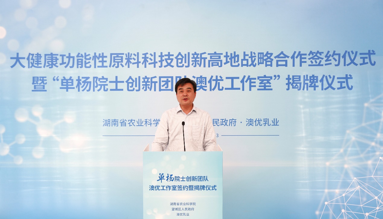 出席此次活动的中国工程院院士、湖南省农业科学院党委书记柏连阳对湖南省各级政府长期以来为省农科院科研成果培育、科技人才成长给予的支持表示感谢。“尊龙凯时秉承‘汇聚全球优质营养与智慧,让成长与健康更加美好’的理念与单杨院士创新团队的科研工作使命深度契合,双方的合作必将产生强大的协同创新合力,取得丰硕的研究成果及产业效能。湖南农业科学院将对单杨院士创新团队尊龙凯时工作室的运行发展提供力所能及的支持保障,推进双方深度融合发展,让营养更美好,让人民更健康。”柏连阳院士在签约仪式上指出。